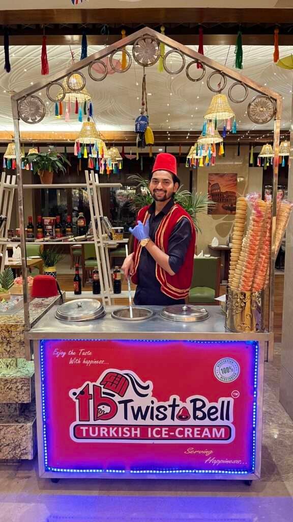 One of the highlights was the live Twist Bell Turkish Ice Cream station. The chef added a playful element by flipping and teasing the cones before handing them over, drawing smiles and laughter without making it feel theatrical. This light, interactive touch worked beautifully as a post-meal moment, particularly for families and group diners.