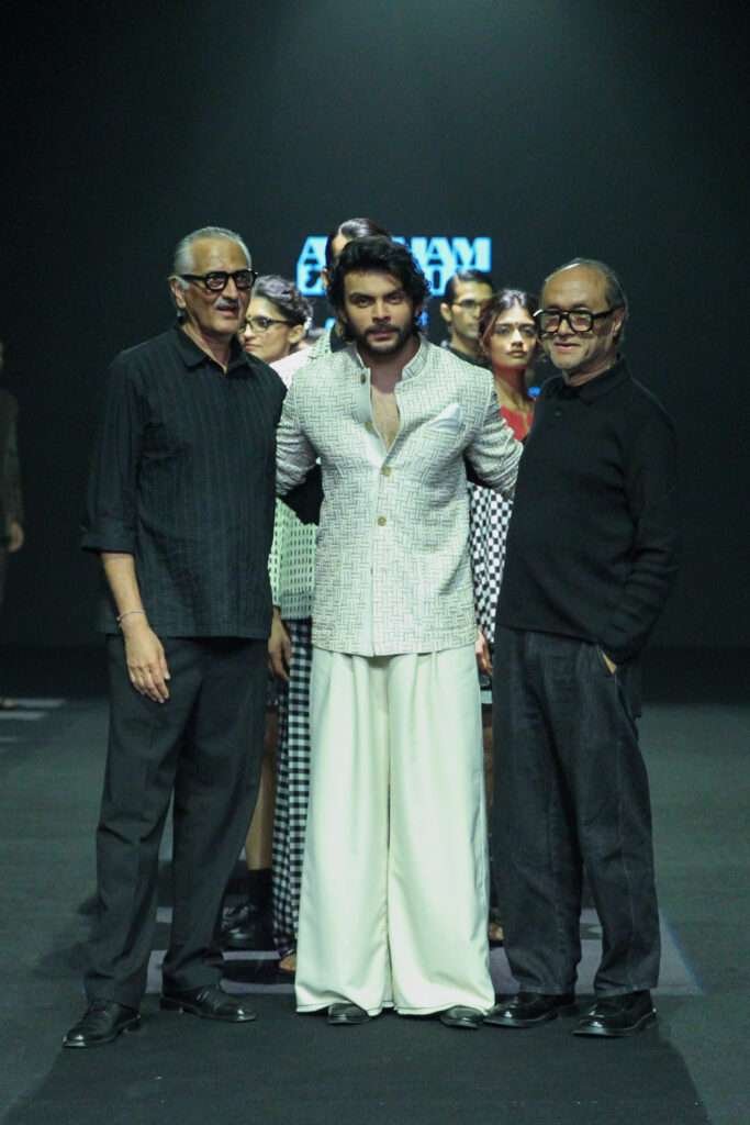 Veer Pahariya closed the showcase in relaxed white trousers and an embellished Bundgala — a modern sartorial statement rooted in heritage.