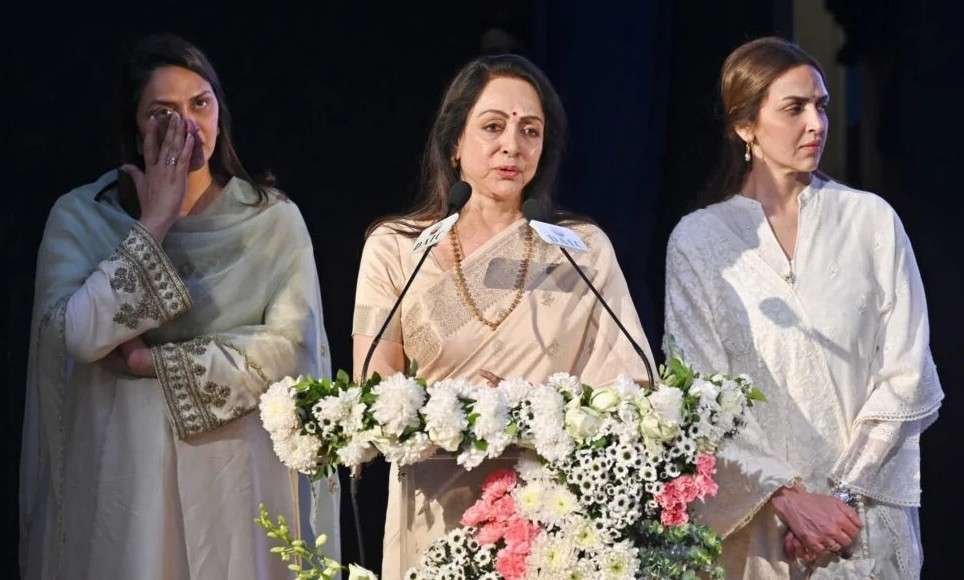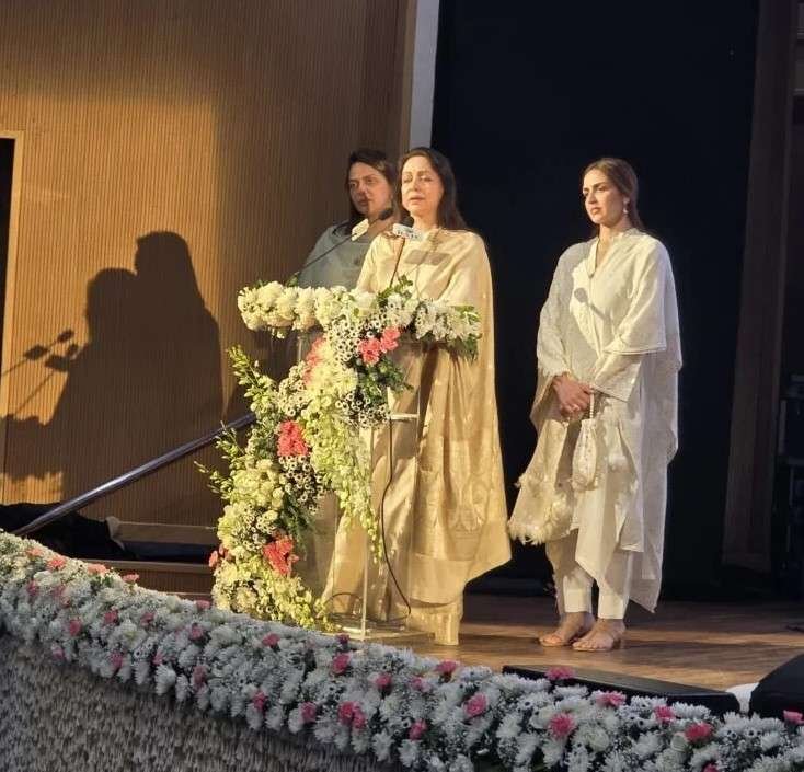 The prayer meeting, hosted by Hema Malini along with Esha and Bharat Takhtani, and Ahana and Vaibhav Vohra, drew a crowd that spilled beyond the hall—a quiet testament to a city and a nation pausing to offer their final salute.