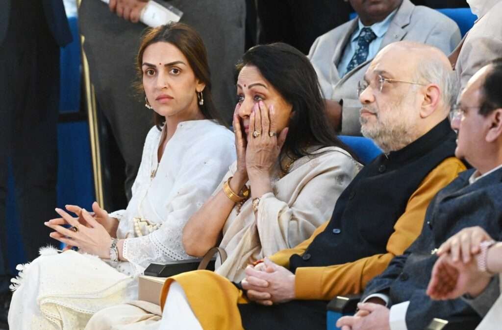 The air shifted palpably when Hema Malini approached the podium, with her daughters. Her composure trembled. Her voice, when it finally emerged, carried both strength and heartbreak: For a family so accustomed to public life, grief is seldom private—yet on this evening, it felt profoundly intimate. Esha and Ahana’s eyes brimmed almost instantly.