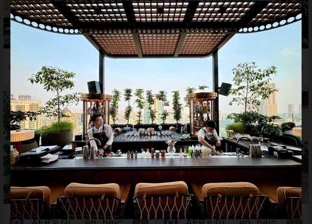 Step into the enchanting Gimlet Garden at AER, the cityside oasis at Four Seasons Hotel Mumbai, where lush greenery meets the glittering skyline of Mumbai. This urban retreat offers an intimate, botanical escape with a front-row view of the city’s iconic towers, providing a serene counterpart to the lively Yacht Club side of AER, known for its vibrant, sunlit buzz.