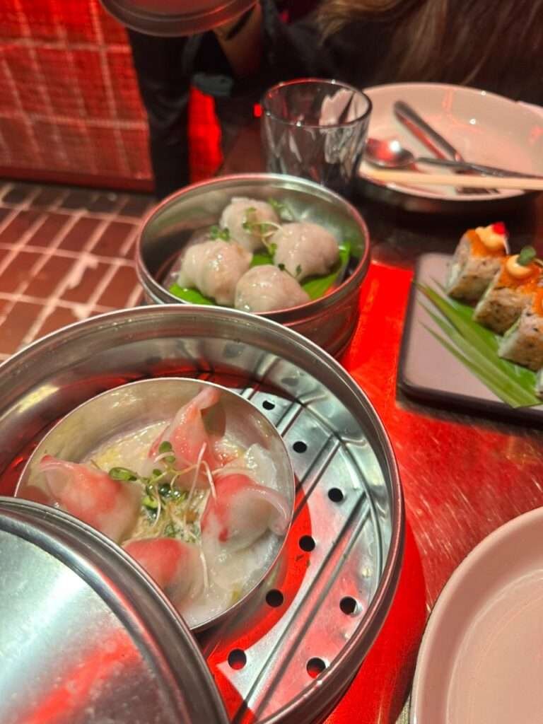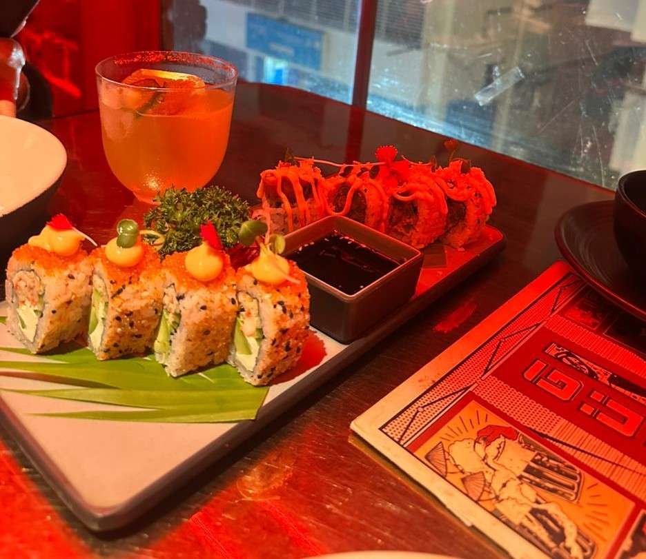 At the heart of the experience is an Omakase-style cocktail bar and a live sushi counter, both adding a performative edge to the evening. Watching cocktails being crafted and sushi prepared in real time brings a sense of theatre to the space, making the bar and kitchen feel like part of the show. It’s immersive, engaging, and perfectly in sync with Gonzo’s bold personality.