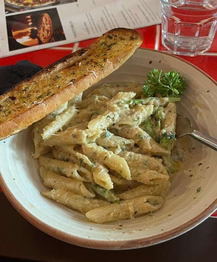 Then came the warm-up act everyone secretly waits for: the garlic bread. Soft, golden, pull-apart perfection — the kind you reach for instinctively, without even realising how quickly it’s disappearing.