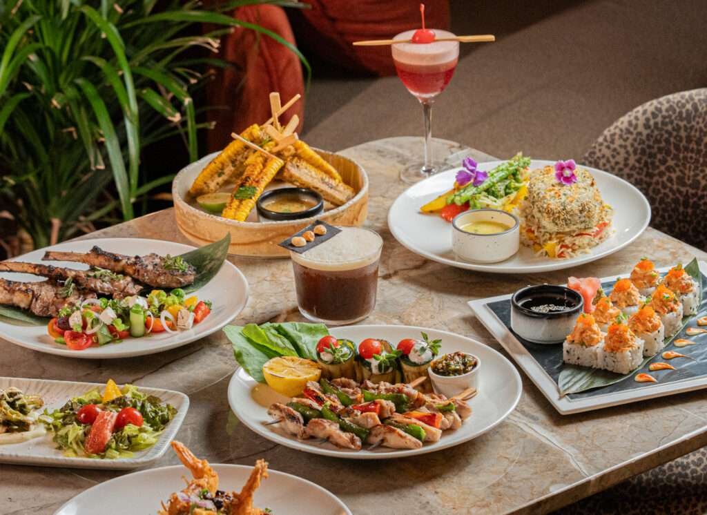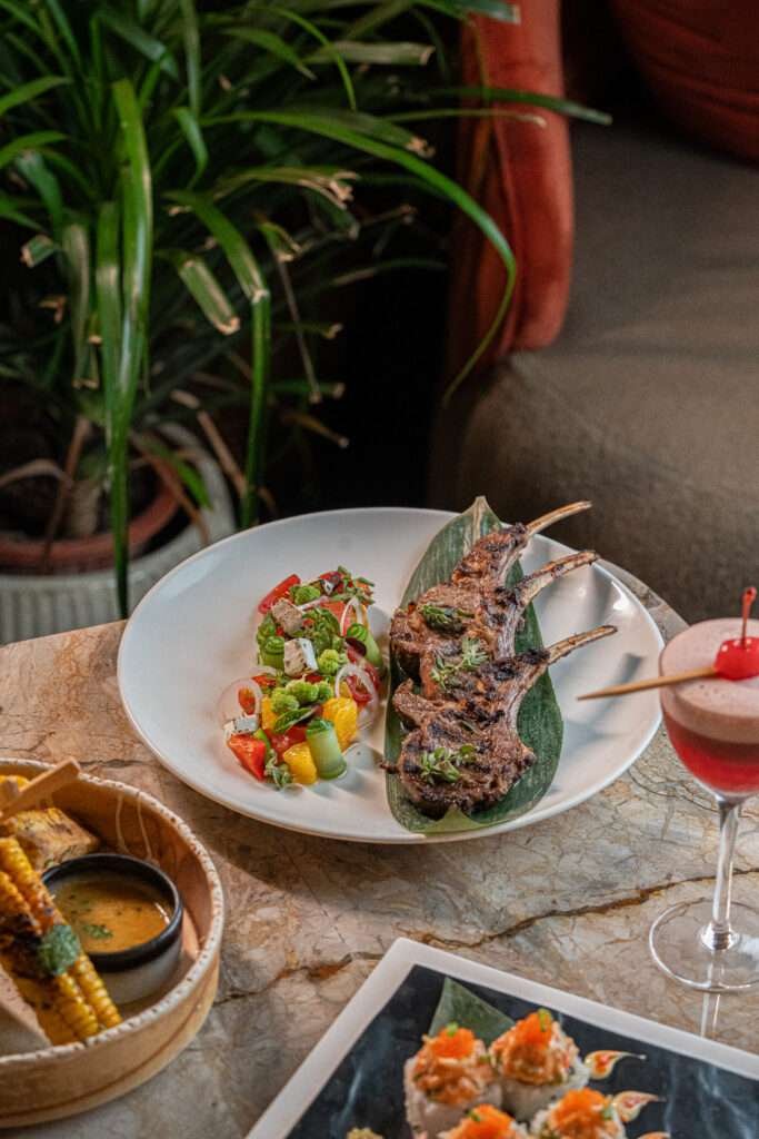 Highlights include Izakaya-style charred broccoli, Indonesian fish skewers, and the show-stealing New Zealand Lamb Shish, served Turkish-style with burnt chili dip and lavash. Dishes like the Mock Duck Souk Taco and Shichimi Yuzu Bhutta fuse street-food soul with gourmet flair — with vegan options available.