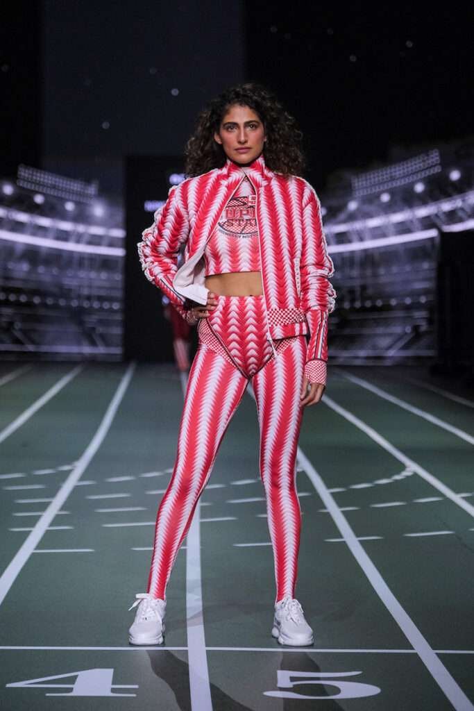 In a show charged with kinetic energy and futuristic form, Joshipura redefined athleisure not as a trend, but a lifestyle. From the moment Kubbra Sait stepped out—commanding the catwalk in a red-and-white striped three-piece set—the tone was set. Bold. Disruptive. Dynamic.