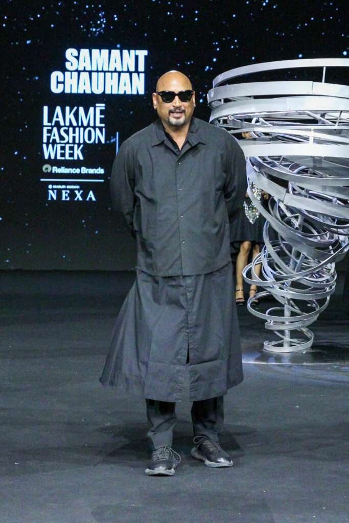 Samant Chauhan presented “First Breath” at Lakmē Fashion Week X FDCI — a collection defined by architectural tailoring and a precise interplay of light and shadow. Working with his signature Bhagalpur silk, the designer elevated indigenous textiles through refined structure and controlled surface treatment.