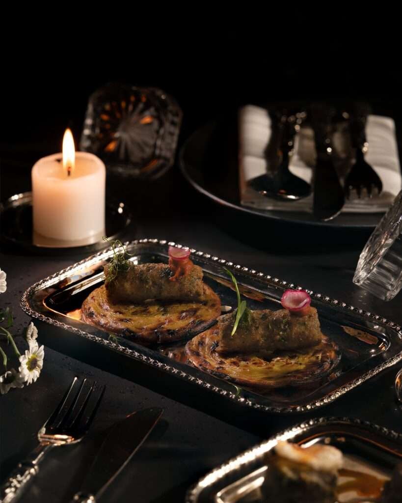 The culinary program complements the concept with small and sharing plates that merge Indian Tandoori and European-Mediterranean influences. Led by chefs Rajdev, Kuldeep Rawat, and Arpit Verma, the menu balances classic flavors with inventive presentations. Highlights include Chili Rubbed Tofu Tikka with parsley–guava dip, Tandoori Baby Bella Mushrooms with sago poppadom, Jalapeño Salmon Tikka, Tandoori Lobster, and Bourbon Lamb Chops. Guests can also enjoy a live Rumali Roti performance at their table.